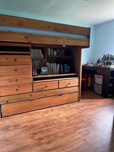 There are two bedrooms that each have a full-size bunk bed with a twin bed on the top portion.