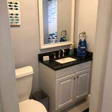 This house has two (2) bedrooms and one (1) full bath. Both private bedrooms have queen beds and share the full bathroom.